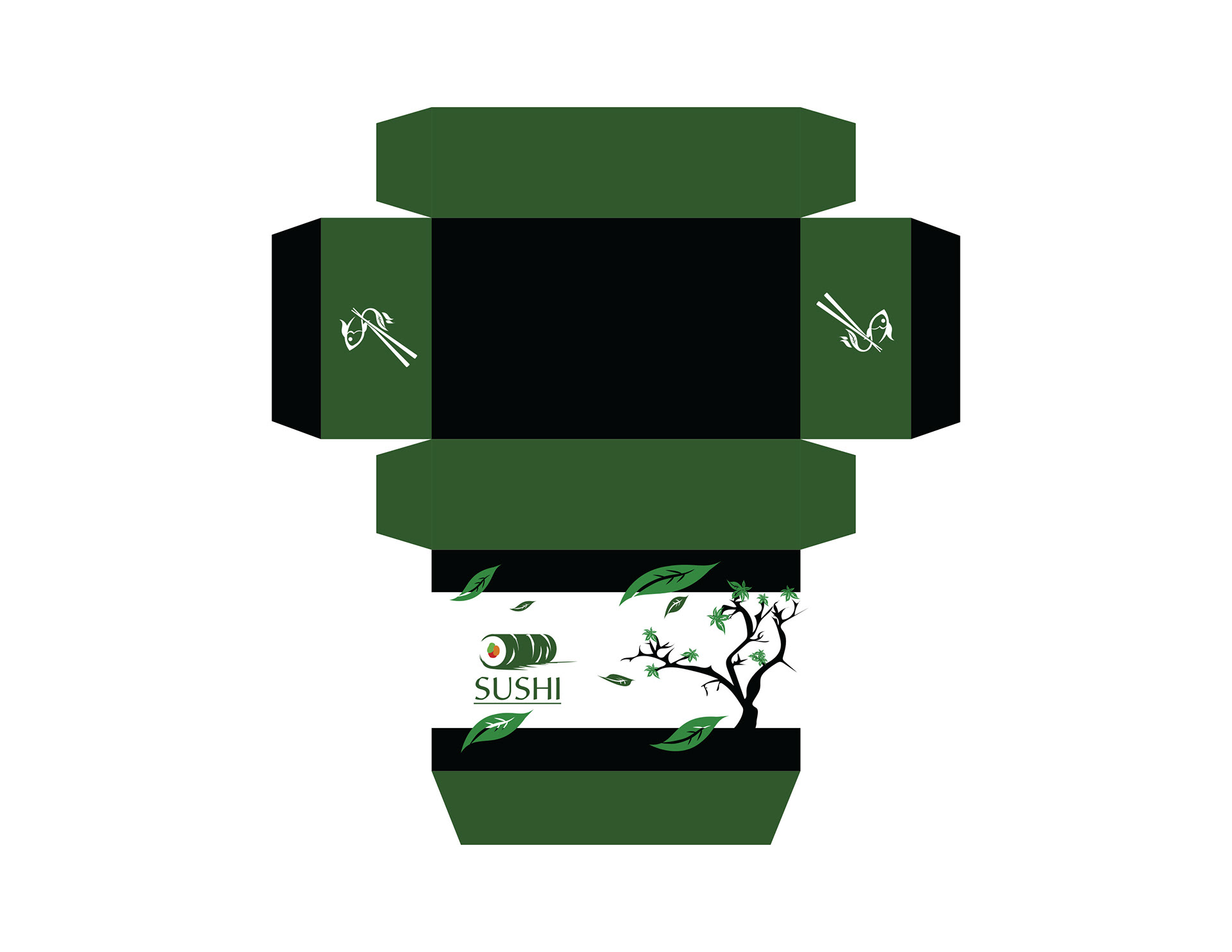 Here is a medium-sized package die-line utilizing the same art style. This package is to be used for holding the sushi rolls within.